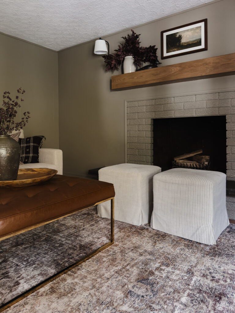 The only problem? Budget. We plan to fully renovate this room in a few years (including a new gas fireplace!), so I didn’t want to spend thousands on a temporary fix. My goal was simple: an inexpensive, easy, and not-too-permanent update (ideally for under $200.)