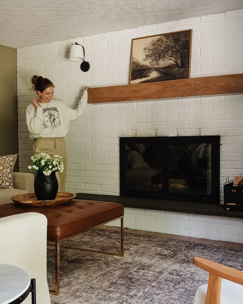 For less than $200, I was able to completely transform our dated 1970’s brick fireplace into something that feels modern, clean, and so much more “us.” It’s the perfect temporary solution until we’re ready for a full renovation, and honestly, I love it so much that I may be sad to see it go!